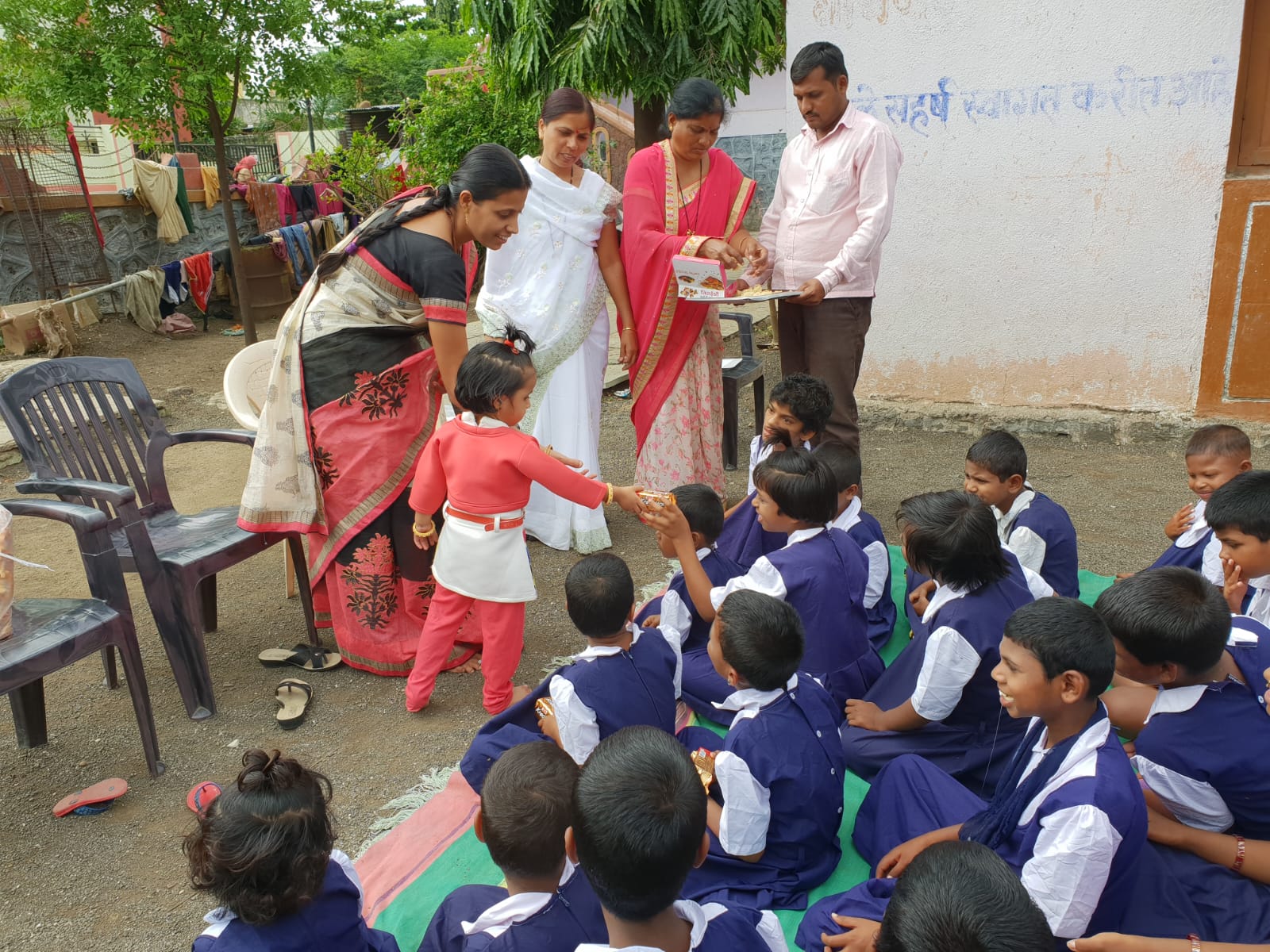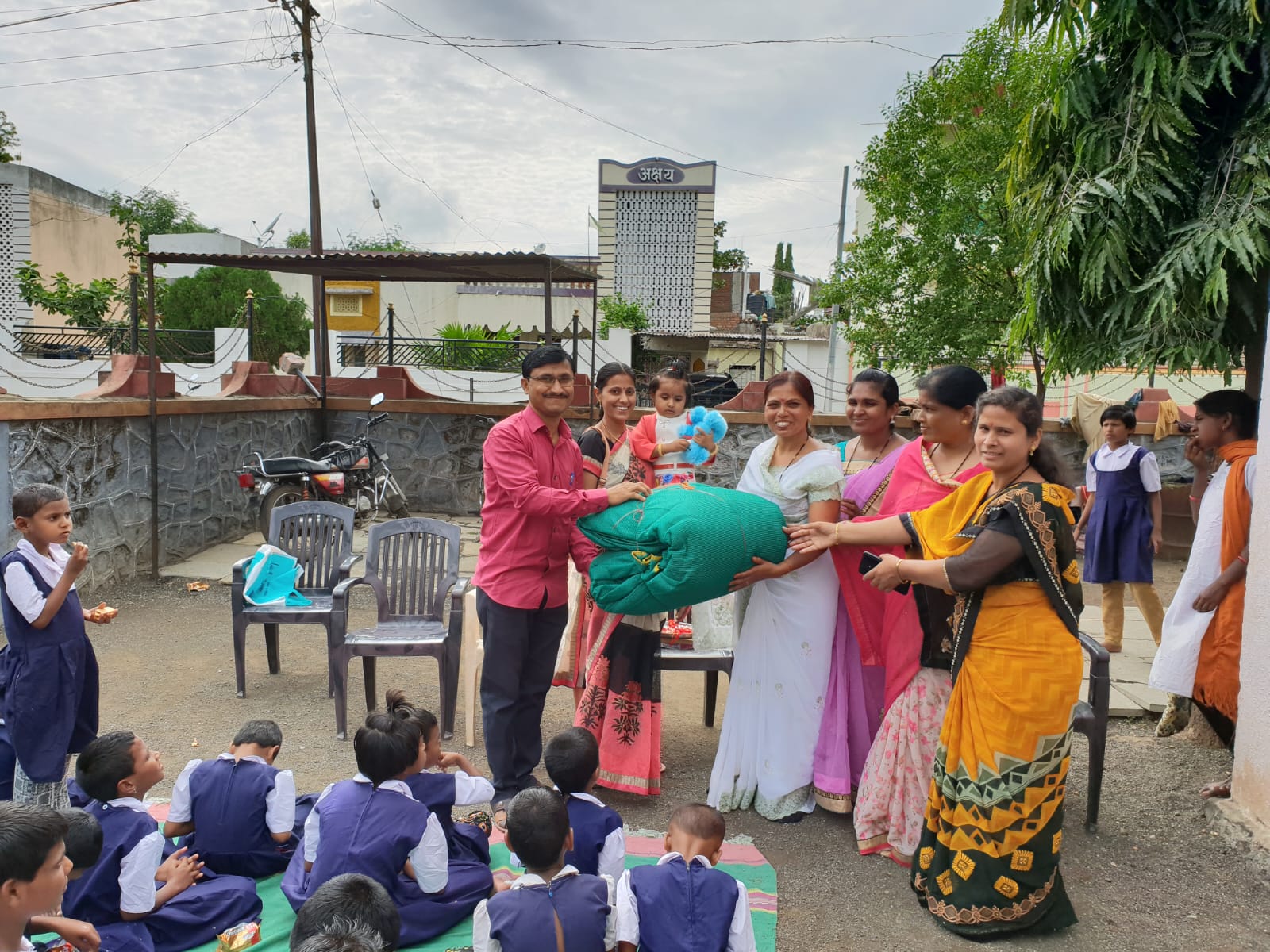 मतिमंद मुलींना, दिव्यांग मुलांना अन्न-धान्य आणि खाऊचे वाटप करण्यात आले तसेच त्यांना निवा-यासाठी ग्रीन कपडा, वाफेसाठी नेब्युलायझर देण्यात आले.