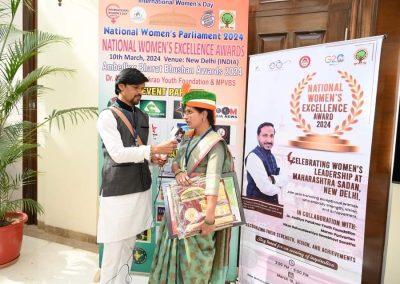 दिनांक १० मार्च २०२४ रोजी महाराष्ट्र सदन नवी दिल्ली यूथ फाउंडेशन व मानवपरिवर्तन विकास बहुउद्देशीय सेवा भावी संस्थे तर्फे आयोजित, राष्ट्रीय महिला संसद २०२४ भरवण्यात आली होती. देशभरातील १३८ कर्तृत्ववान महिलांचा राष्ट्रीय उत्कृष्ट महिला पुरस्काराने सम्मान करण्यात आला.